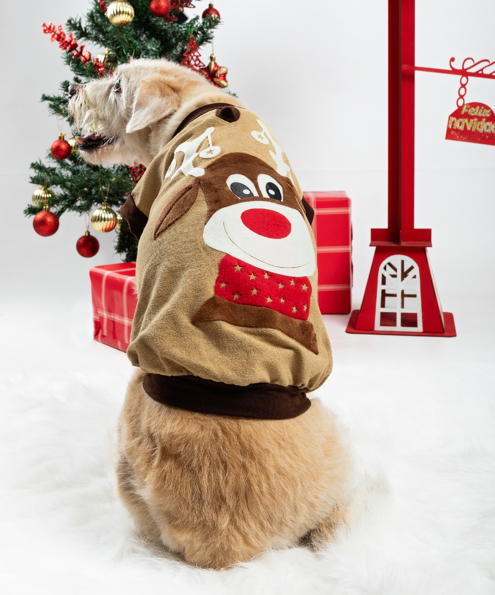 La Camiseta Café con Estampado de Reno es la elección perfecta para que tu perro o gato luzca adorable y festivo esta Navidad. Confeccionada en materiales suaves, permite que tu mascota se mueva cómodamente mientras disfruta de las celebraciones.
