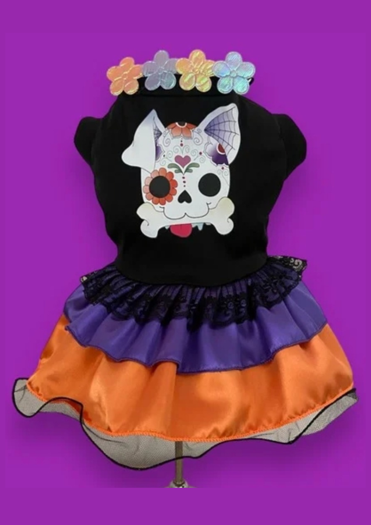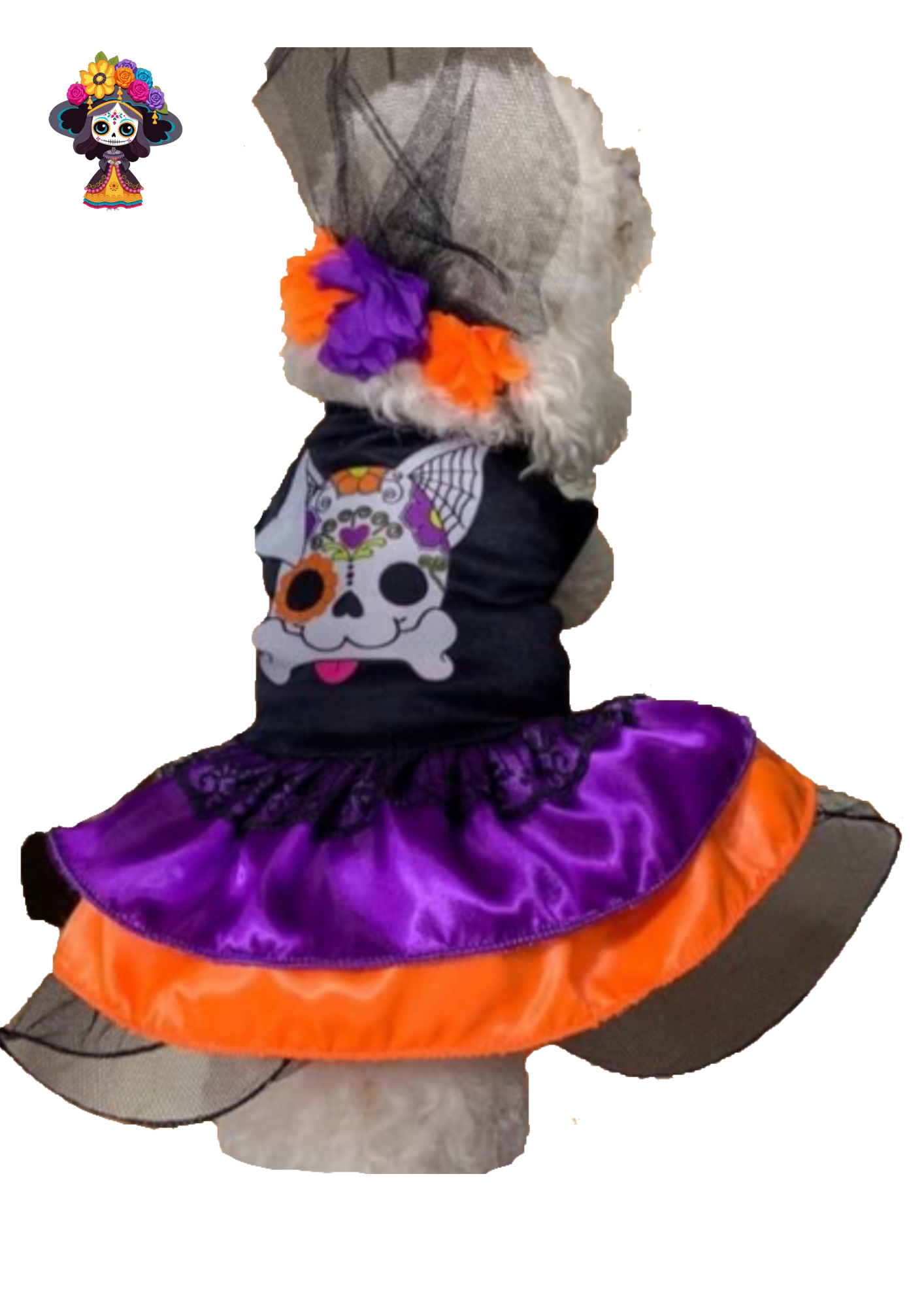 Haz que tu mascota se luzca con este divertido disfraz de Katrina, perfecto para perros y gatos. Con colores vibrantes y detalles únicos, este atuendo transforma a tu amigo peludo en la estrella de cualquier fiesta o celebración. Fácil de poner y cómodo de llevar, garantiza momentos llenos de alegría y muchas sonrisas. ¡Que la tradición y el buen humor acompañen a tu mascota!