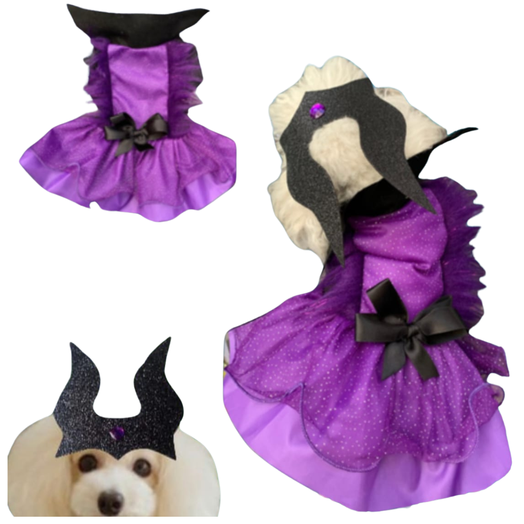 Dale a tu perrita un toque de misterio con este disfraz inspirado en Maléfica. Perfecto para Halloween, este disfraz para mascotas es cómodo y elegante, ideal para quienes buscan disfraces para perros que sean únicos y encantadores.