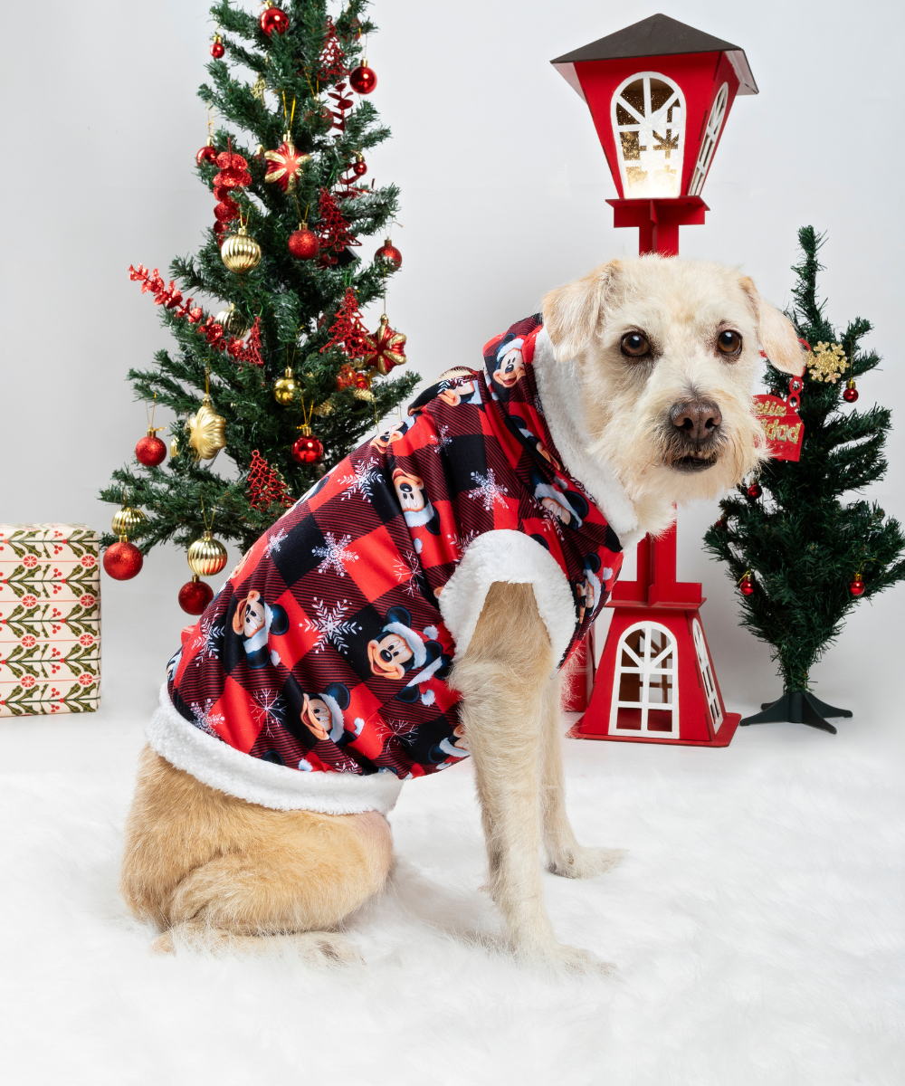 Lleva la magia de Mickey Mouse a las festividades con este saco navideño. Hecho con materiales suaves y cómodos, garantiza que tu mascota se mantenga abrigada sin restricciones de movilidad.